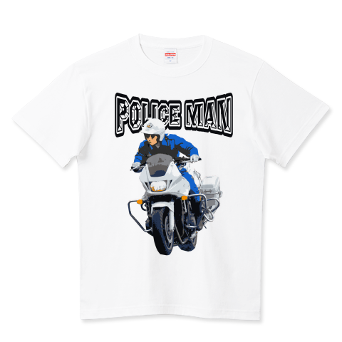 『白バイ(前プリント) 交通機動隊 バイカー 警察 交通課 捕まえてやる 取締 免許停止 ねずみとり 100km ポリス POLICE バイク ホンダ』Tシャツ