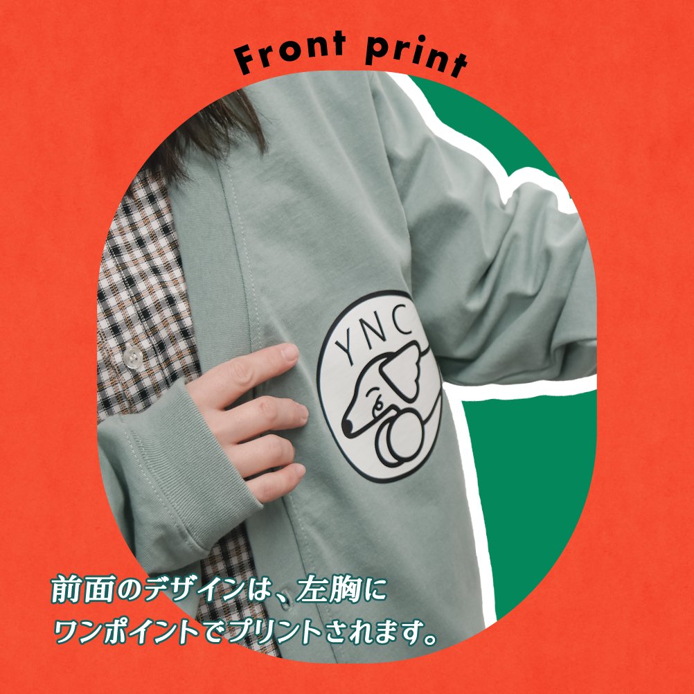前面のデザインは、左胸にワンポイントでプリントされます。