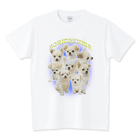 韓国で流行のアニマルグラフィックTをうちのわんこで作りました。“ぼり”ちゃんとこぐまちゃんの愛称“くま”で“BORITOKUMA”です。子犬時代の写真を集めました。